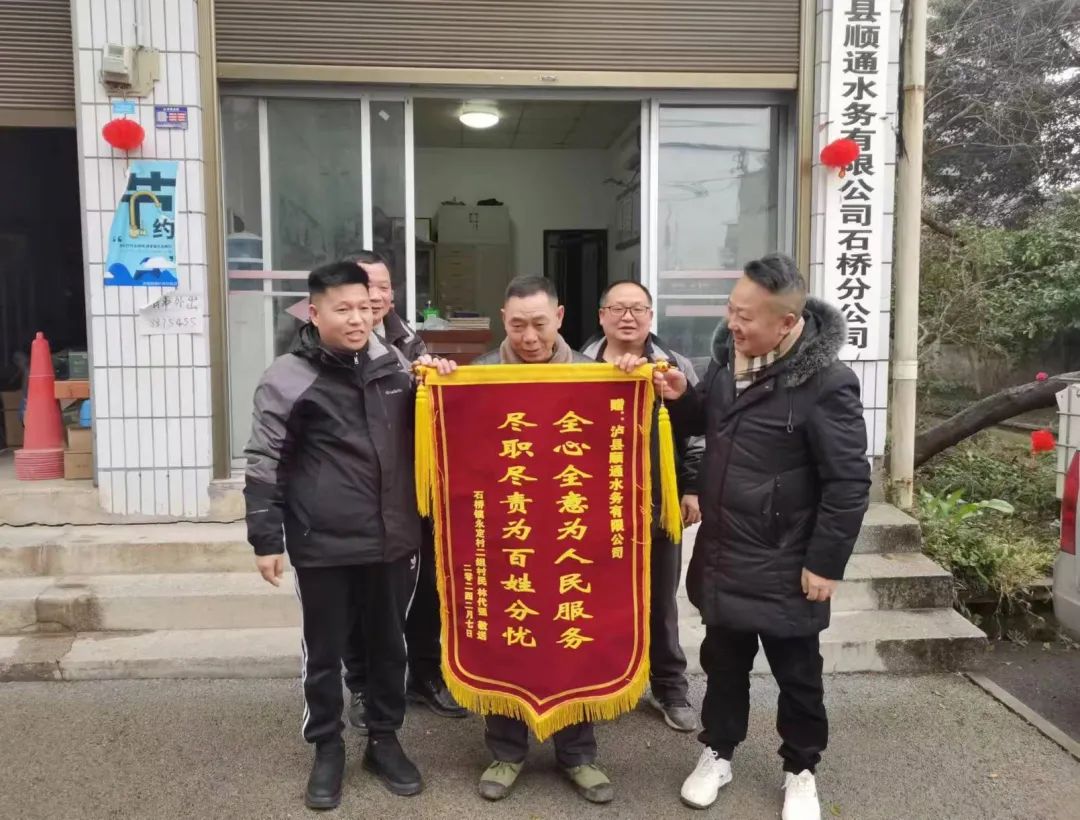 2月7日,石橋鎮(zhèn)永定村送來(lái)錦旗,感謝順通水務(wù)公司解決用水問(wèn)題,為民辦實(shí)事。